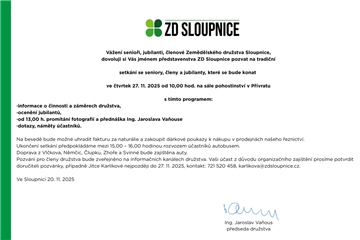 Vážení senioři, jubilanti, členové Zemědělského družstva Sloupnice,