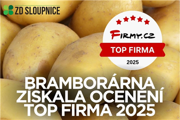 S radostí oznamujeme, že se naše bramborárna zařadila mezi nejlepší firmy ve svém oboru prodeje ovoce a zeleniny a získala prestižní odznak TOP Firma 2025 na Seznamu.